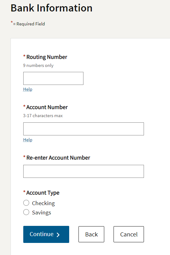 9Enter the bank information.Important: Use your practice bank information NOT your personal account.