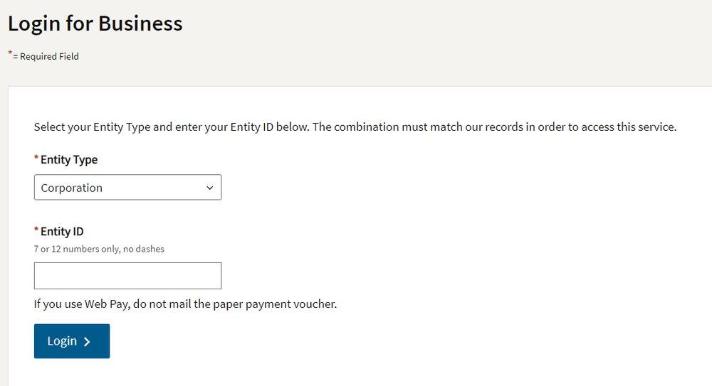 3Choose entity type: Corporation and your Entity ID. Enter the characters in the pictures and proceed.