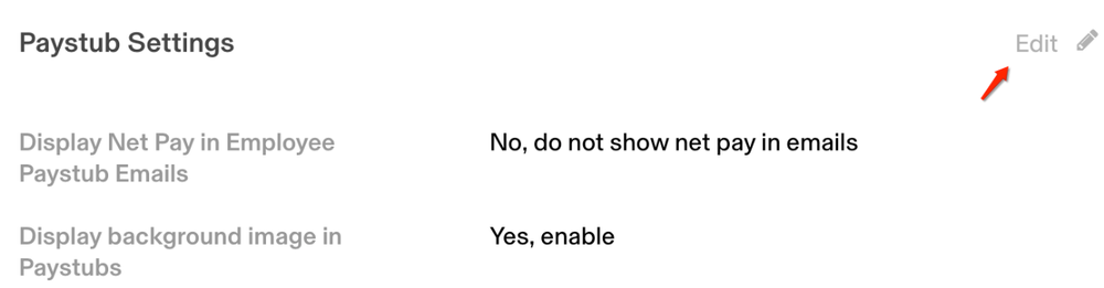 2Admin Settings For the Payroll AppAs an admin of the Payroll app, you'll be able to decide whether you'd like to show employees their net pay and/or the payday email/paystub images. These can be updated in your company Payroll app > Settings tab > Paystub Settings section.