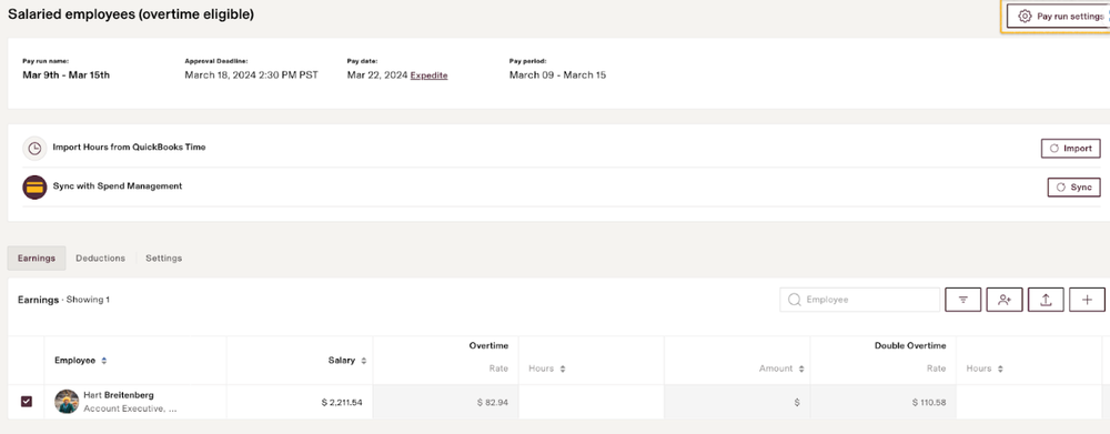 Alternatively, you can withhold bonus income at a flat rate of 22% for federal tax purposes. To select this option, either create an off-cycle pay run, or click the Pay Run Settings gear icon on the top right of a regular payroll run.