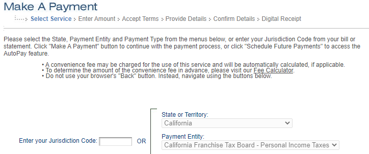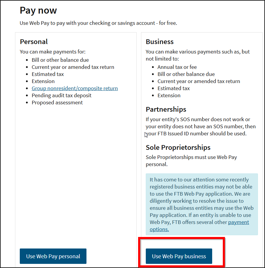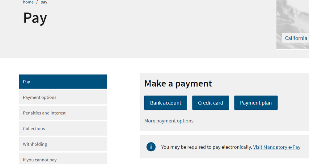 - Visit the FTB website here: ftb.ca.gov/pay/index.html.